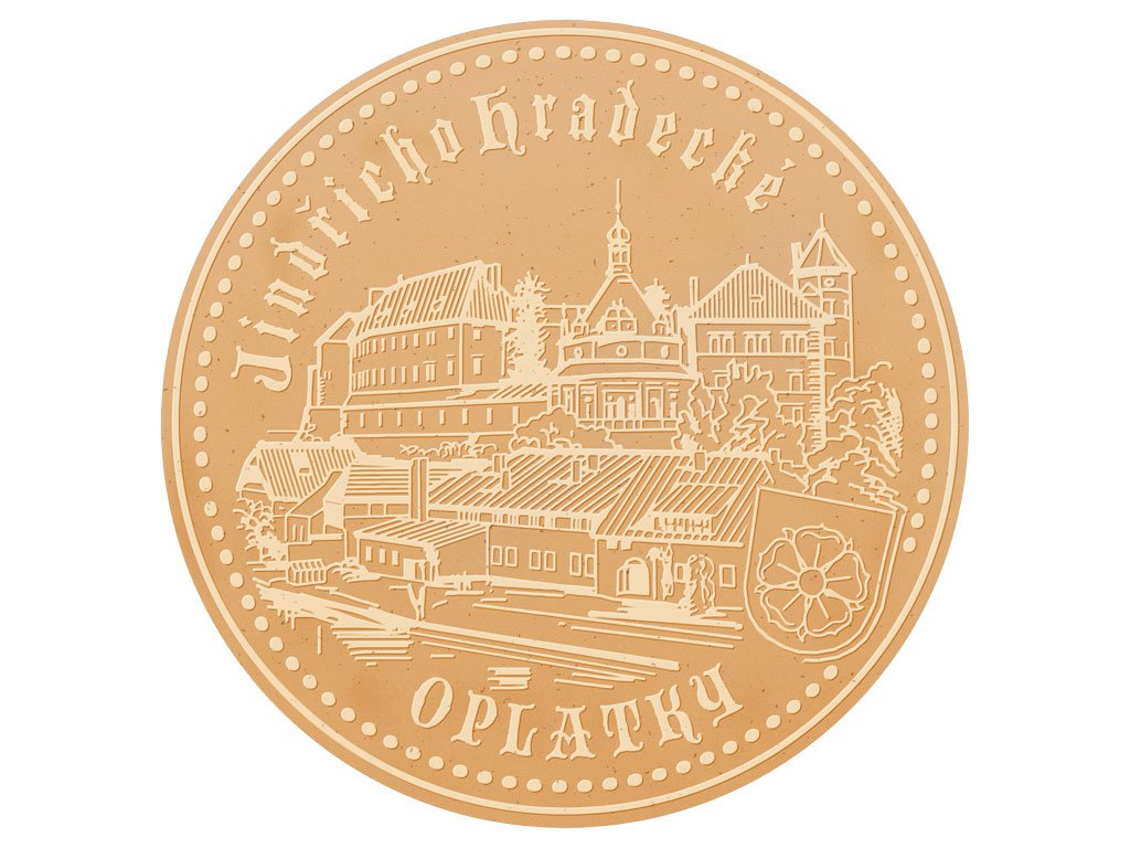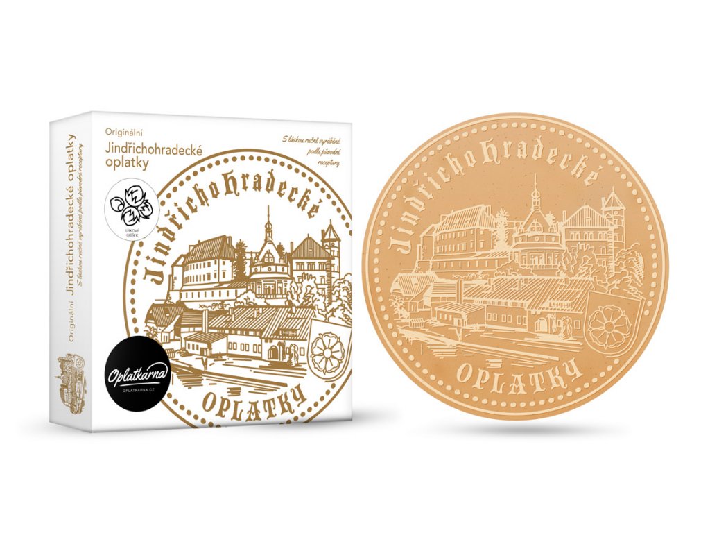 Originální lázeňské oplatky vyráběně klasickou technologií. Lískooříšková příchuť je nejoblíbenější u široké veřejnosti. Motiv na oplatce je tvořen reliéfem ve stejné barvě jako materiál oplatky. Každá krabička obsahuje 5 ks klasických lázeňských oplatek o průměru 18 cm (standardní velikost).