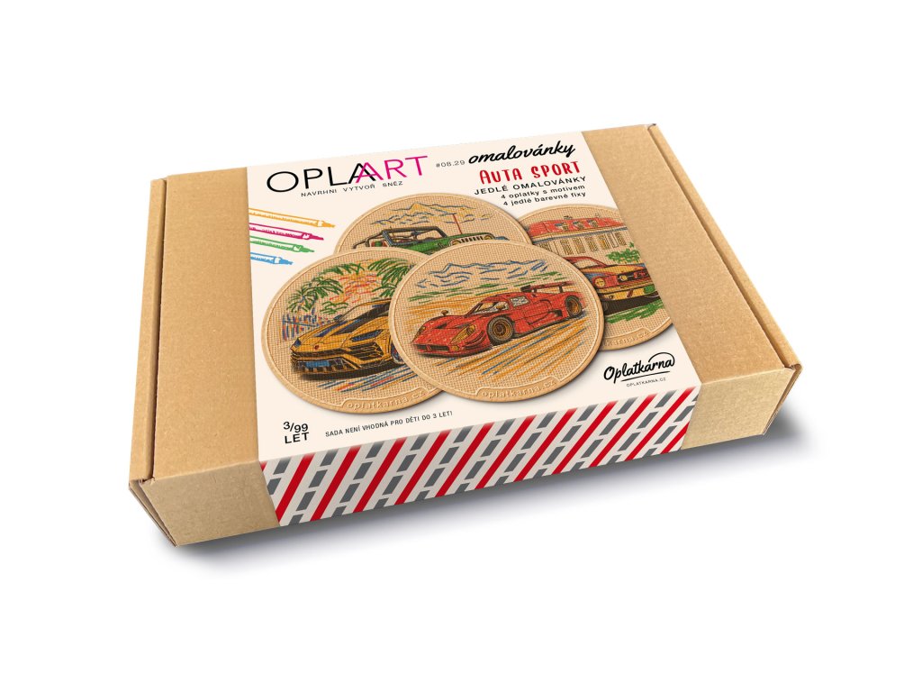 Obsah balení: 4 oplatky o průměru 120mm potištěné šablonou SPORTOVNÍCH AUT, 4 jedlé fixy různých barev, podložka pod oplatky.