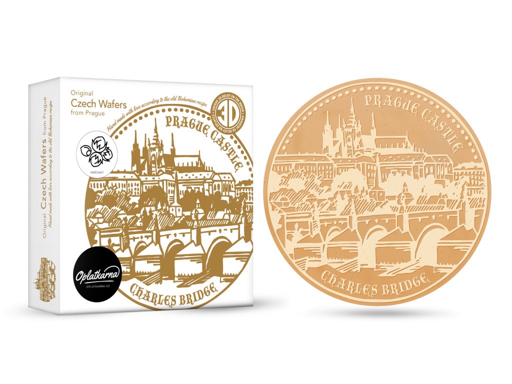 Originální lázeňské oplatky vyráběně klasickou technologií. Lískooříšková příchuť je nejoblibenější u široké veřejnosti. Motiv na oplatce je tvořen reliéfem ve stejné barvě jako materiál oplatky. Každá krabička obsahuje 5 ks klasických lázeňských oplatek o průměru 18 cm (standardní velikost).